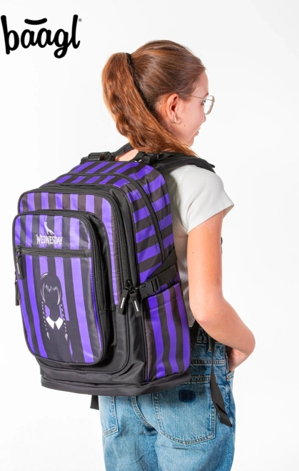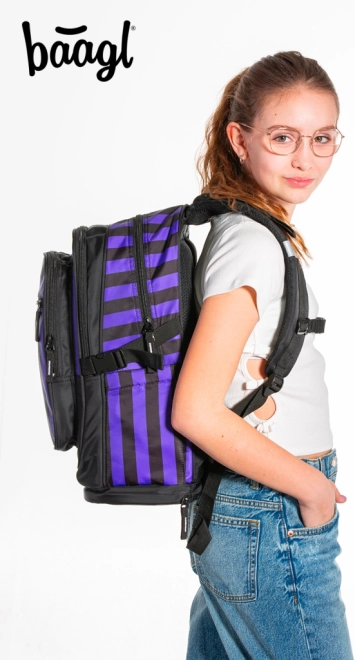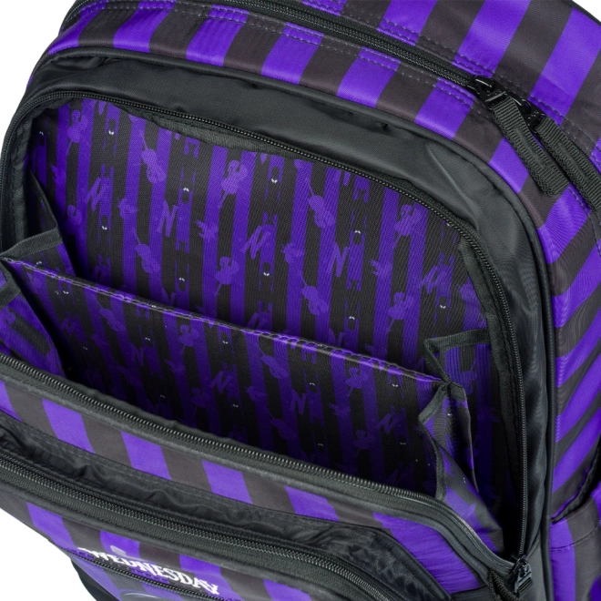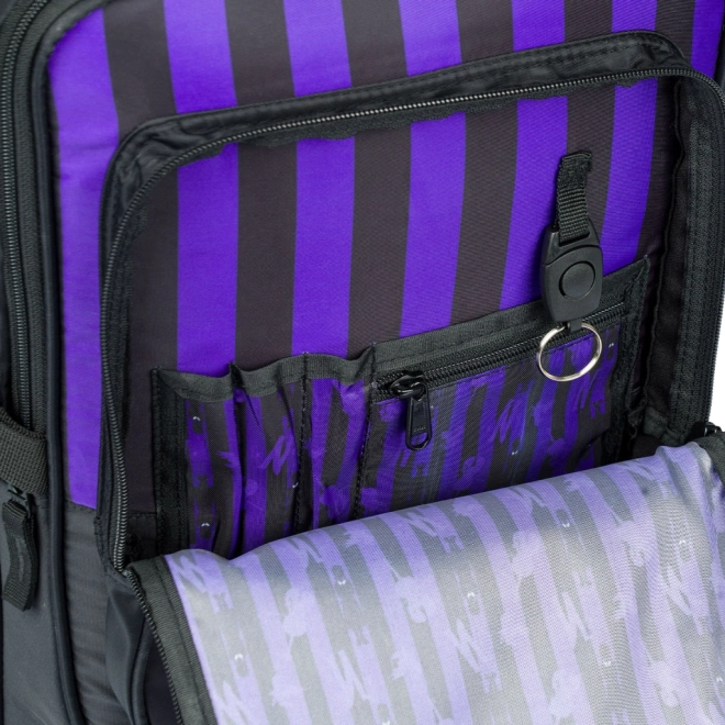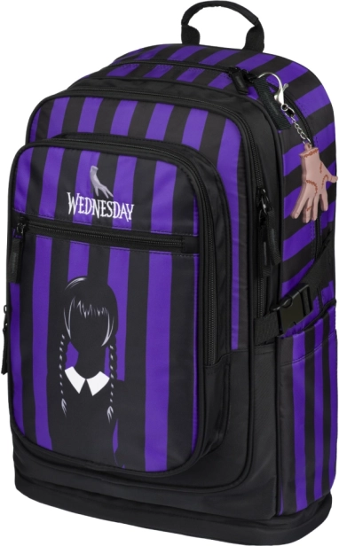 Kooliseljakott CUBIC WEDNESDAY ühendab silmapaistva disaini musta‑lilla triibustikuga ning läbimõeldud ergonoomika igapäevaseks mugavuseks. Täielikult reguleeritavate õla-, rinna- ja külgmiste kompressioonirihmadega kohandad koti hõlpsalt oma kehale, samas kui hingav seljatugi kergendab kandmist ka täis laadungiga.