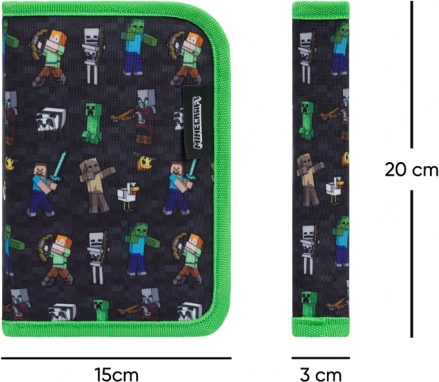 Avastage praktiline ja vastupidav koolipinal litsentsitud MINECRAFT motiiviga. Tänu kahele sisemisele klapile on pliiatsid, värvipliiatsid ja joonlaud alati korrektselt paigutatud. YKK tõmblukk tagab sujuva ja pikaajaliselt töökindla sulgemise, nii et võite pinalile iga päev loota.