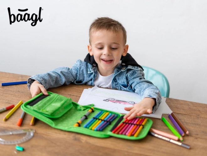 Kaks klappi elastsete hoidikutega hoiavad pliiatsid, värvipliiatsid ja muud tarvikud kindlalt paigal ning korrapäraselt järjestatud.