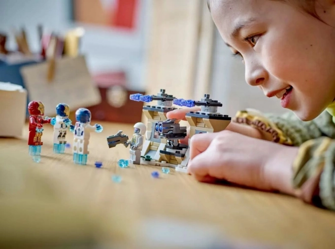 Elusta stseene filmist Avengers: Age of Ultron. Lapsed ühinevad RAUDMEHE ja RAUDLEEGIONI üksusega, et tungida HYDRA kindlusesse. Tegevuslikud mänguelemendid, detailsed minifiguurid ja läbipaistvatest detailidest lennuefektid tagavad tundidepikkuse loomingulise mängu.
