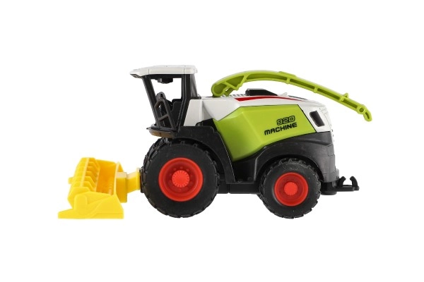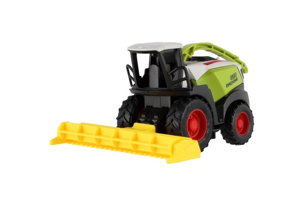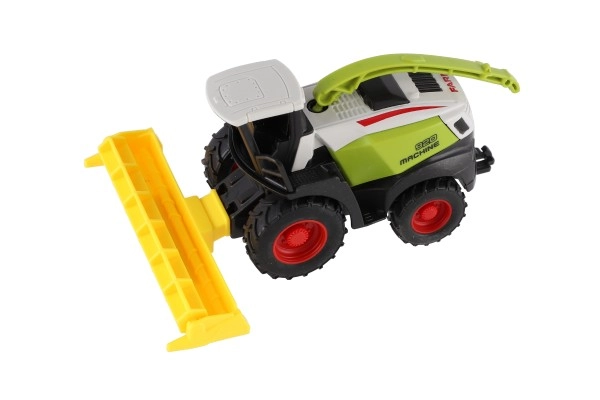 Kombaini mudel matkib usutavalt päris põllumajandusmasinaid – suured rattad, esiosa lisaseade ja erksad värvid veelgi realistlikumaks mänguks.