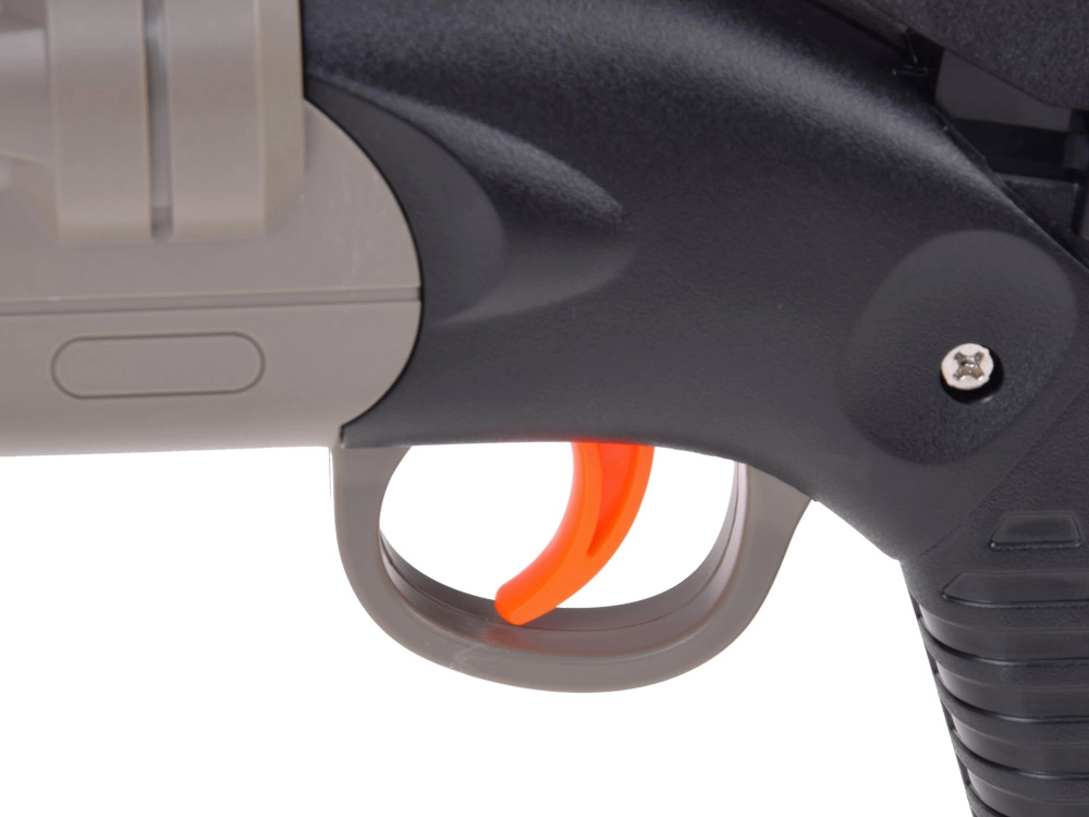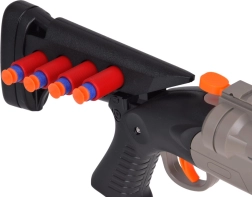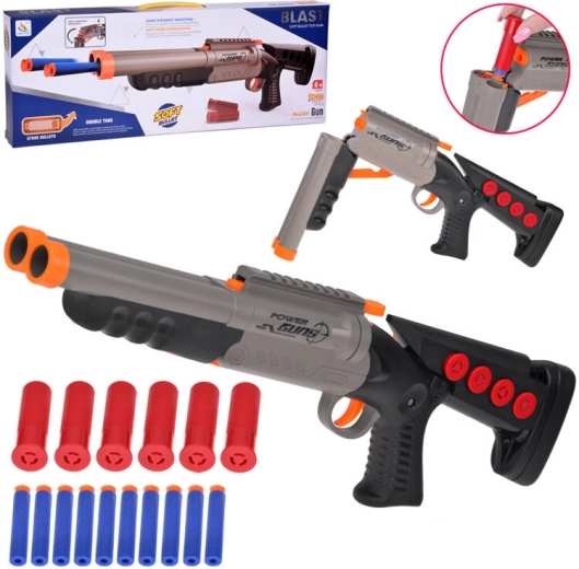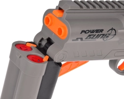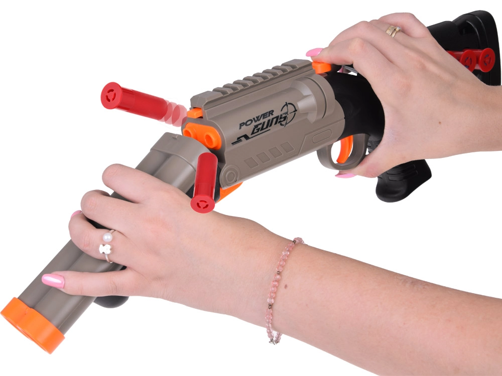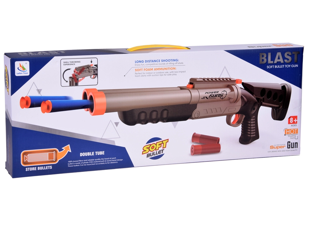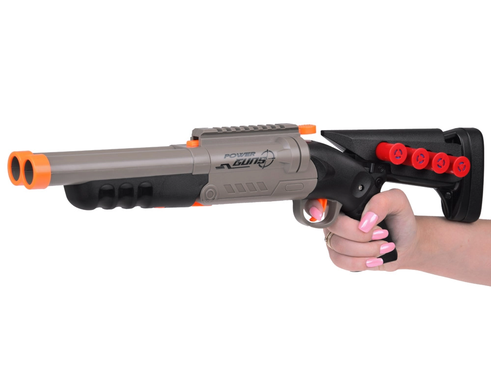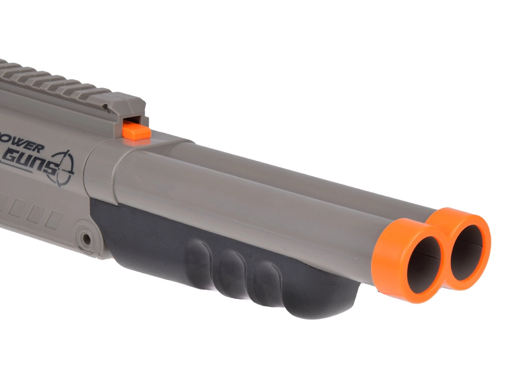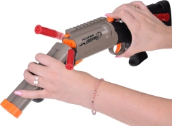 See massiivne laste topeltpüss sobib ideaalselt põnevusmängudeks nii toas kui õues. Silmapaistev kvaliteetne plastkorpus, oranžid ohutusrõhuasetused ja realistlikud detailid, sh tühjade padrunite väljavise taaslaadimisel. Tänu topeltrauvale saab kerge päästikuvajutusega lasta ühe noole või tugevamaga mõlemad korraga.