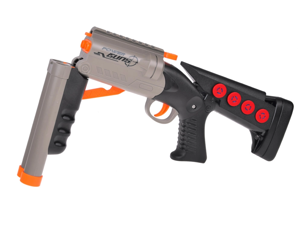 Komplektis on 6 padrunit ja 10 iminapaga vahtnoolt, mis libisevad kergesti padrunitesse kiireks “moonaks” valmistumiseks. Relv murdub keskelt mugavaks laadimiseks, pumbamehhanism tagab sujuva töö ning stabiilne kaba aitab täpselt sihtida.