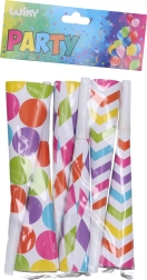 Lisage oma peole rohkem lõbu nende peotrumpetitega MIX, mis on 20 cm pikad ja tulevad pakendis 6 tükiga.
