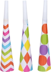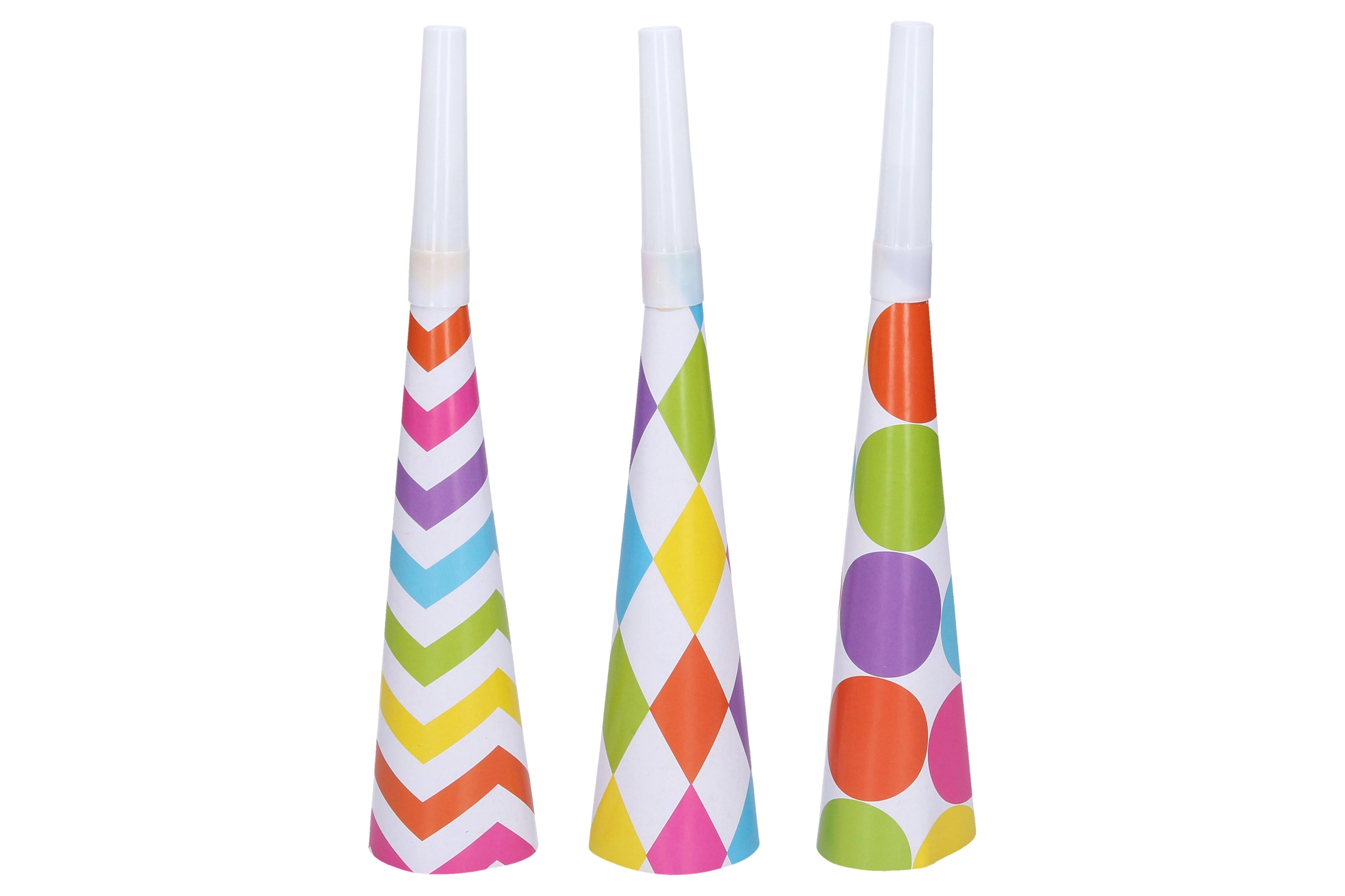 Kaunistage oma pidu nende värviliste trumpetitega ja lisage rohkem sarmi ja rõõmu. Ideaalne sünnipäevadeks, pühadeks või muudeks erilisteks sündmusteks.