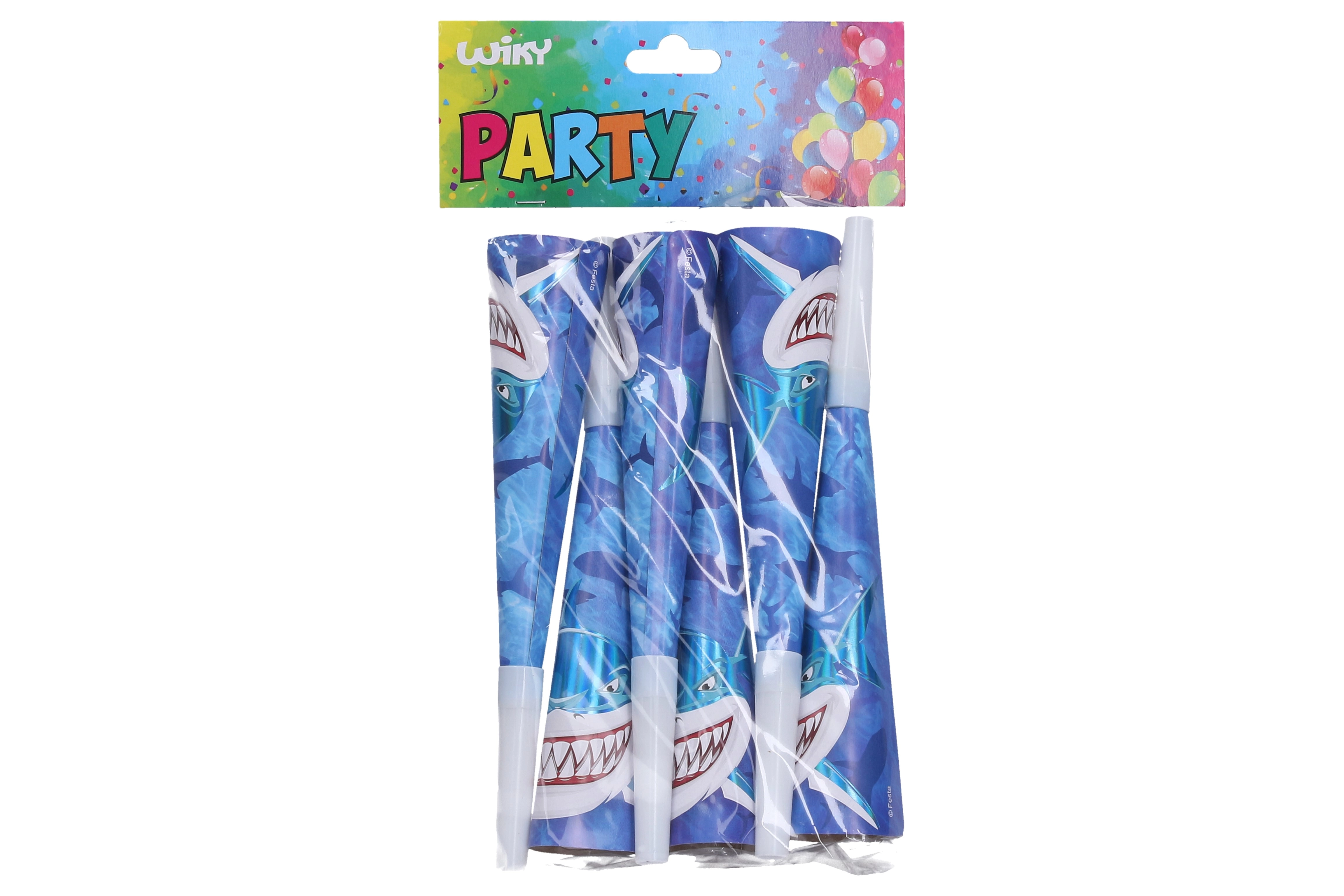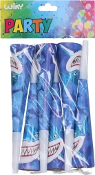 Loo igale peole õige meeleolu hai motiiviga peotrumpetitega. Tänu 20 cm pikkusele sobivad need hästi ka väiksematele lastele ning on lihtsad kasutada – piisab puhumisest ja lõbu võib alata.