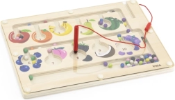 Magnetpliiats juhib kuulikesi läbi labürindi, treenides täpset haaramist, keskendumist ja silma-käe koordinatsiooni.