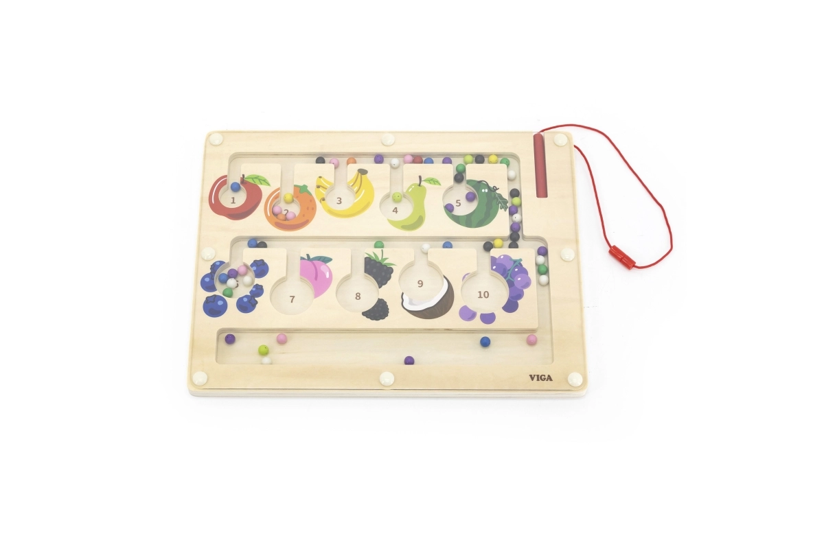 See kvaliteetne puidust magnetiline labürint on suurepärane hariv mänguasi laste osavuse arendamiseks. Lapsed liigutavad magnetpliiatsiga värvilisi kuulikesi mööda märgitud radasid, sorteerivad neid värvi järgi ning seostavad puuvilja piltide või numbritega. Mäng toetab loogilist mõtlemist, keskendumist ja silma–käe koordinatsiooni.