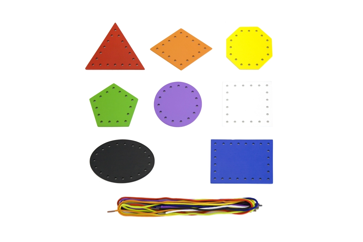 Kaheksa värvilist kujundit ja kaheksa paela innustavad sortima, sobitama ja nimetama. Lapsed õpivad värve ja geomeetrilisi kujundeid lõbusal viisil.