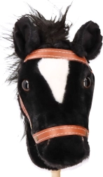Realistlikult kujundatud hobusepea pruuni päitse ja valge märgiga lisab laste mängule ehtsust ja põnevust.