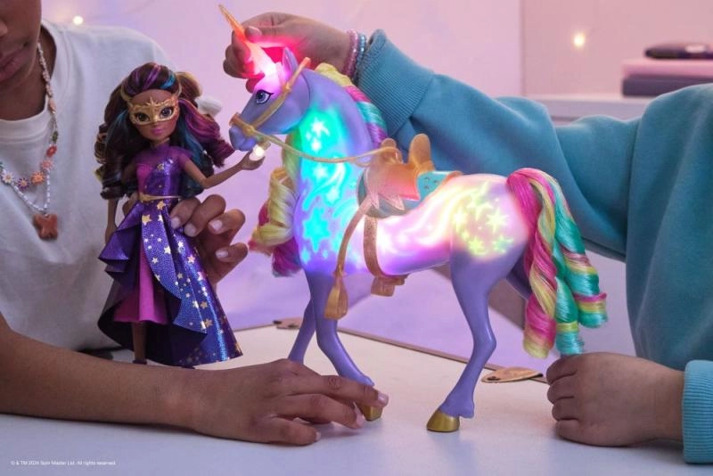 See toob mängu maagiat valgusefektide ja puudutusele reageeriva interaktsiooniga, mis võimaldab taaselustada Ükssarviku Akadeemia lummavaid hetki. Proovi erinevaid puudutusi, et aktiveerida valgusefekte ja laule.