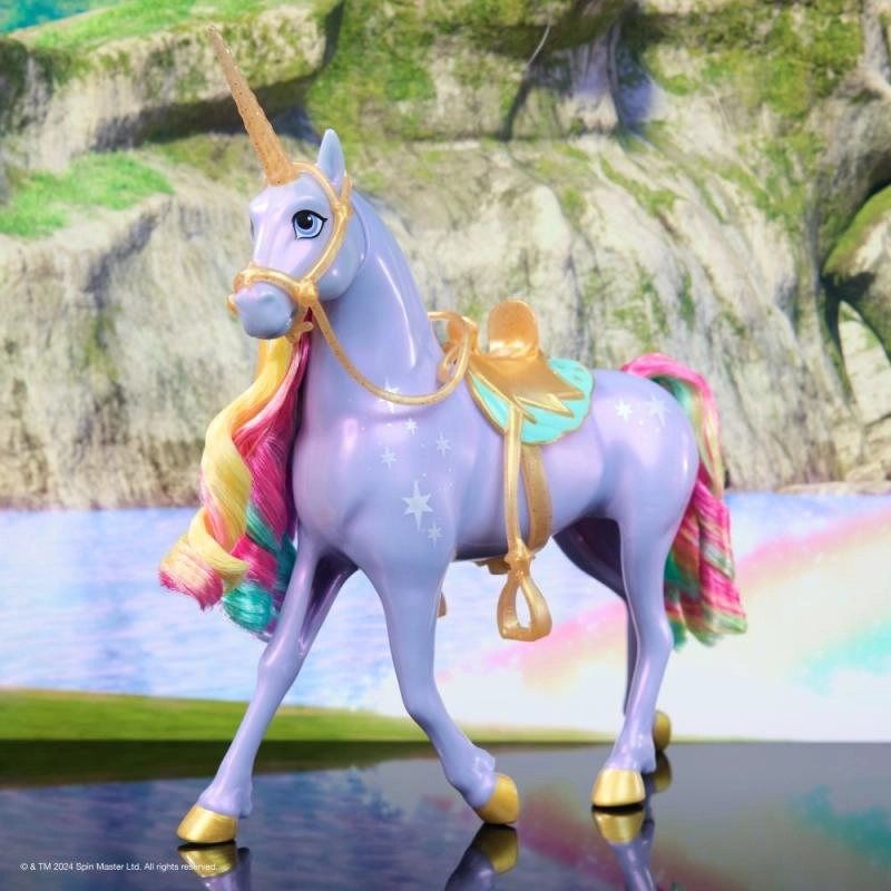 Helendav ükssarvik Polaarka, kõrgus 28 cm, on inspireeritud NETFLIXi animasarjast ja menukast raamatusarjast. See interaktiivne ükssarvik reageerib puudutusele vikerkaarevärviliste tulede, heliefektide ja sarjast pärit lauludega.