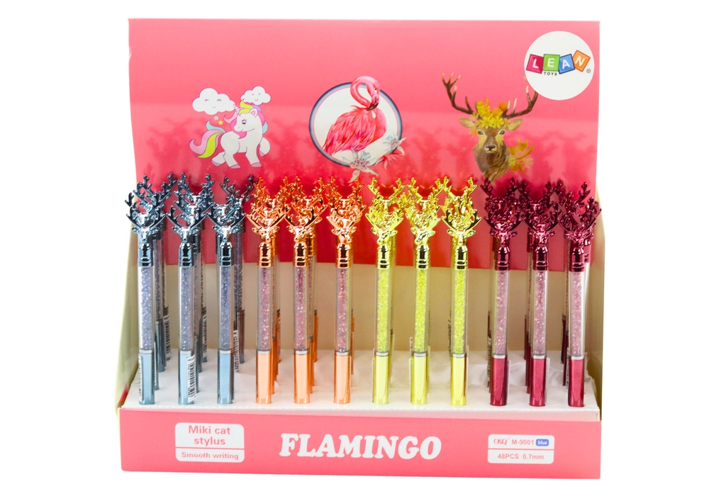 Elegantne pallipliiats õrna hirvefiguuri ja läbipaistva korpusega, mis on täidetud sädelevate kivikestega, lisab kirjutamisele luksusliku noodi. Saadaval on sinine või must tint, peen 0,7 mm ots ja mugav kirjutamiskogemus igapäevaseks kasutamiseks ja erilisteks puhkudeks.