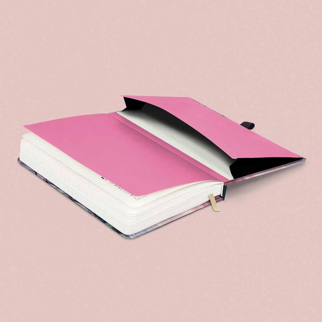 Stiilne NOTIQUE märkmik sakura motiiviga on ideaalne igapäevaseks kirjutamiseks. Tänu tugevatele kaantele ja kummipaelaga sulgemisele püsib sisu turvaliselt, samal ajal kui pliiatsihoidik ja praktiline sisemine tasku aitavad väikseid esemeid korras hoida.