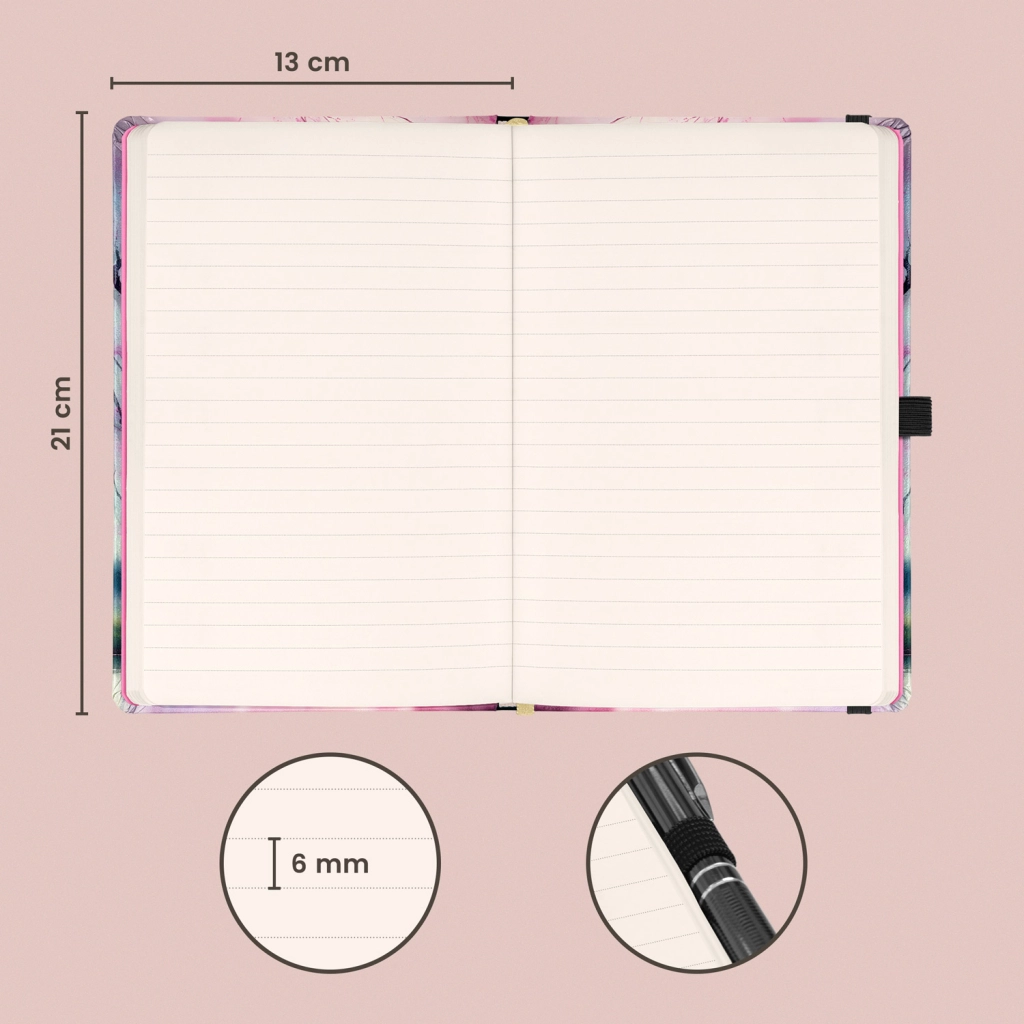 Formaat 13 × 21 cm on suurepärane nii kotti kui lauale. 172 lehega meeldival kollasel paberil on teil piisavalt ruumi ideede, päevikukannete ja tööalaste märkmete jaoks.