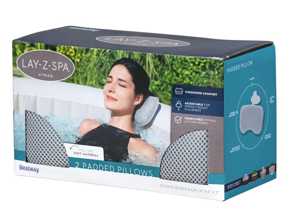 LAY‑Z‑SPA padjad tõstavad mugavuse uuele tasemele nii pärast pingelist päeva kui ka pere või sõpradega wellness-hetkedel. Pehme vahusüdamik leevendab kaelalülisamba pinget, hingav võrk kuivab kiiresti ja nõuab vähe hooldust. Tänu nutikale vastukaaluga rihmakinnitusele püsivad padjad kindlalt paigas, kuid nende kõrgust saab kergesti kohandada vastavalt sinu kehale.