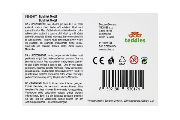 Liblika kujuline seebimullitaja on ideaalne mänguasi, mis köidab lapsi mitte ainult oma värvilise ilu, vaid ka lihtsa kasutuse tõttu. Ülaosas on lisaks lõbus kuuliga nuputamismäng, mis aitab arendada laste peenmotoorikat.