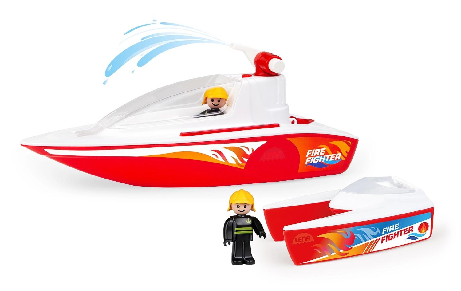 Kaks liikuvat figuuri sobituvad kokpitti ja tekile, nii et lapsed saavad lihtsalt luua oma lugusid – alates tulekahjude kustutamisest kuni julgete päästeoperatsioonideni. Vastupidav teostus ja ujuv disain sobivad suurepäraselt mängimiseks nii toas kui õues.
