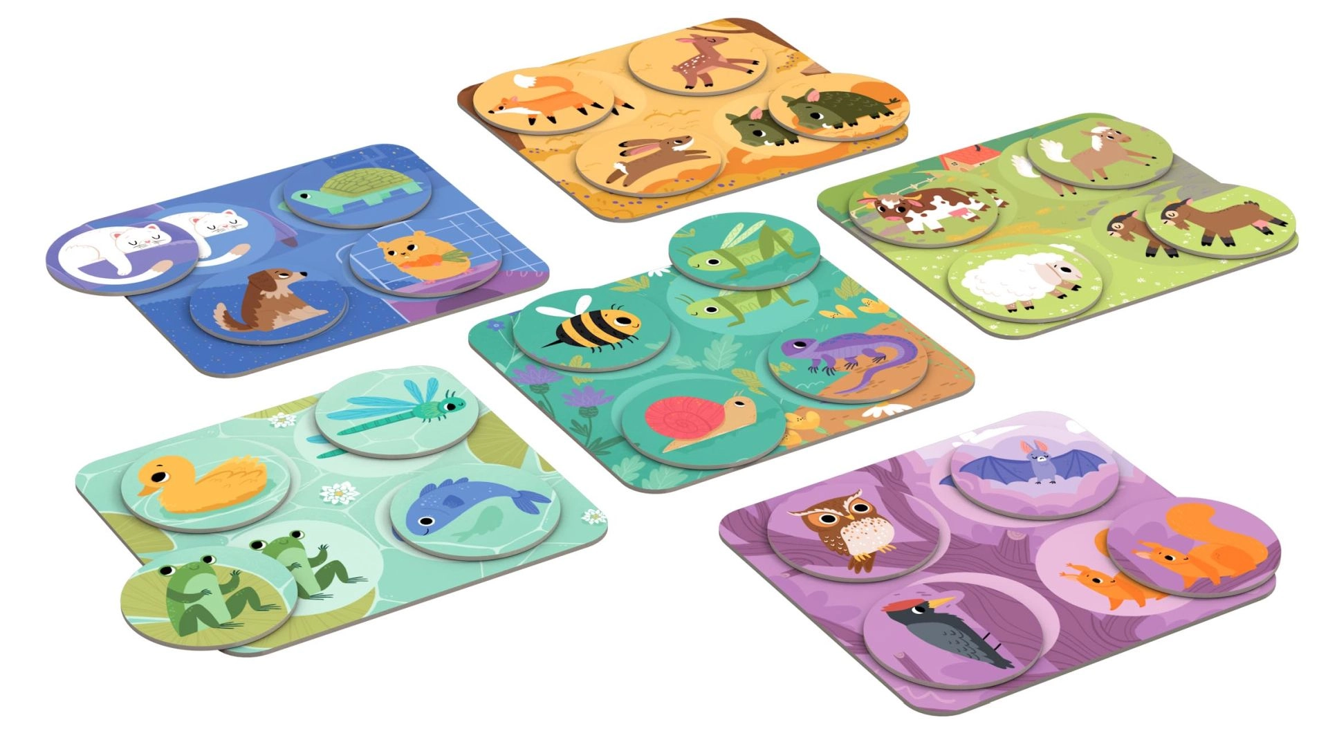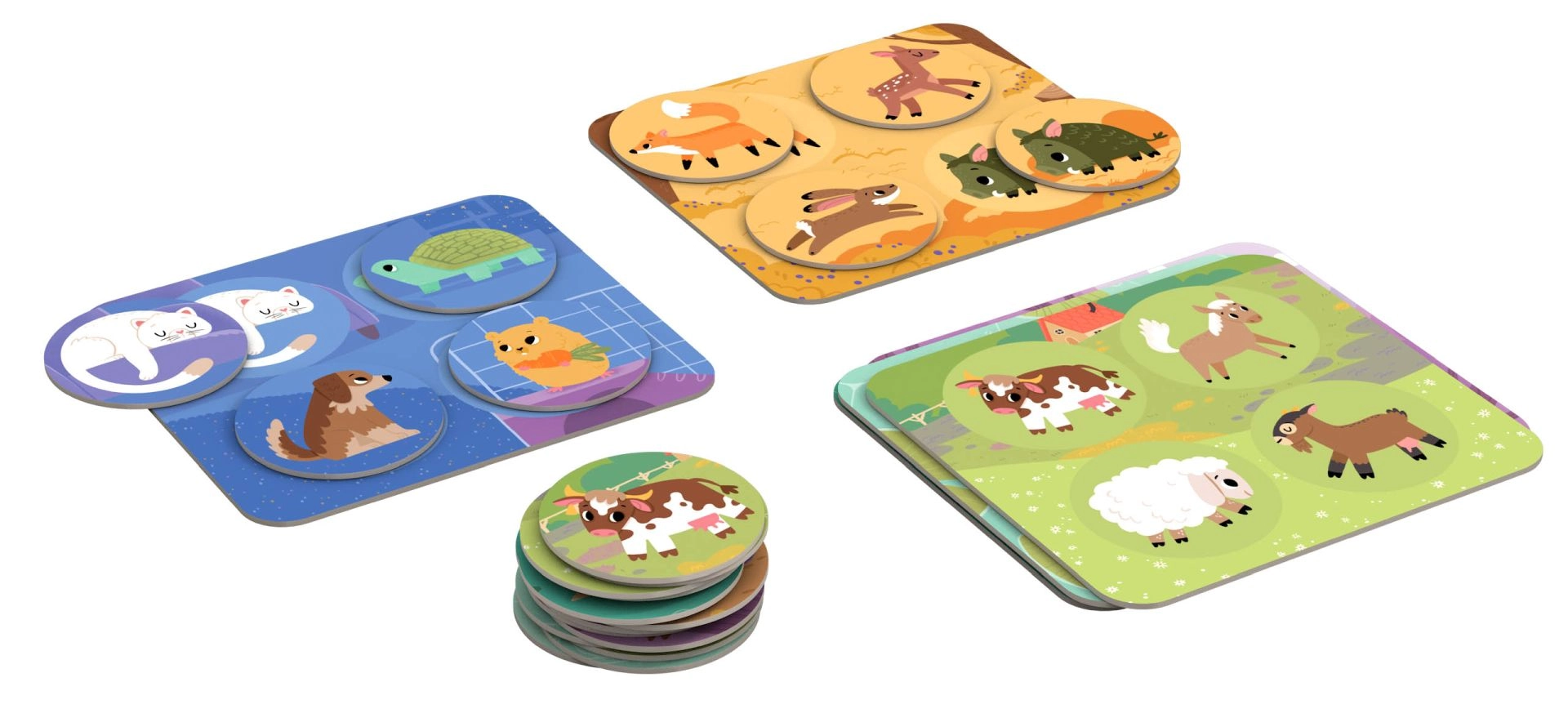See populaarne mäng tutvustab sõbralikul viisil mudilastele 24 looma ja nende elukeskkondi – kodu, mets, niit, tiik ning puude latvad. Tänu suurtele žetoonidele ja vastupidavatele 2 mm kartonglaudadele on mäng väikestele lastele hõlpsasti käsitsetav ja turvaline. Karbis on ka nõuanded ja mänguvariandid vanematele ja õpetajatele.