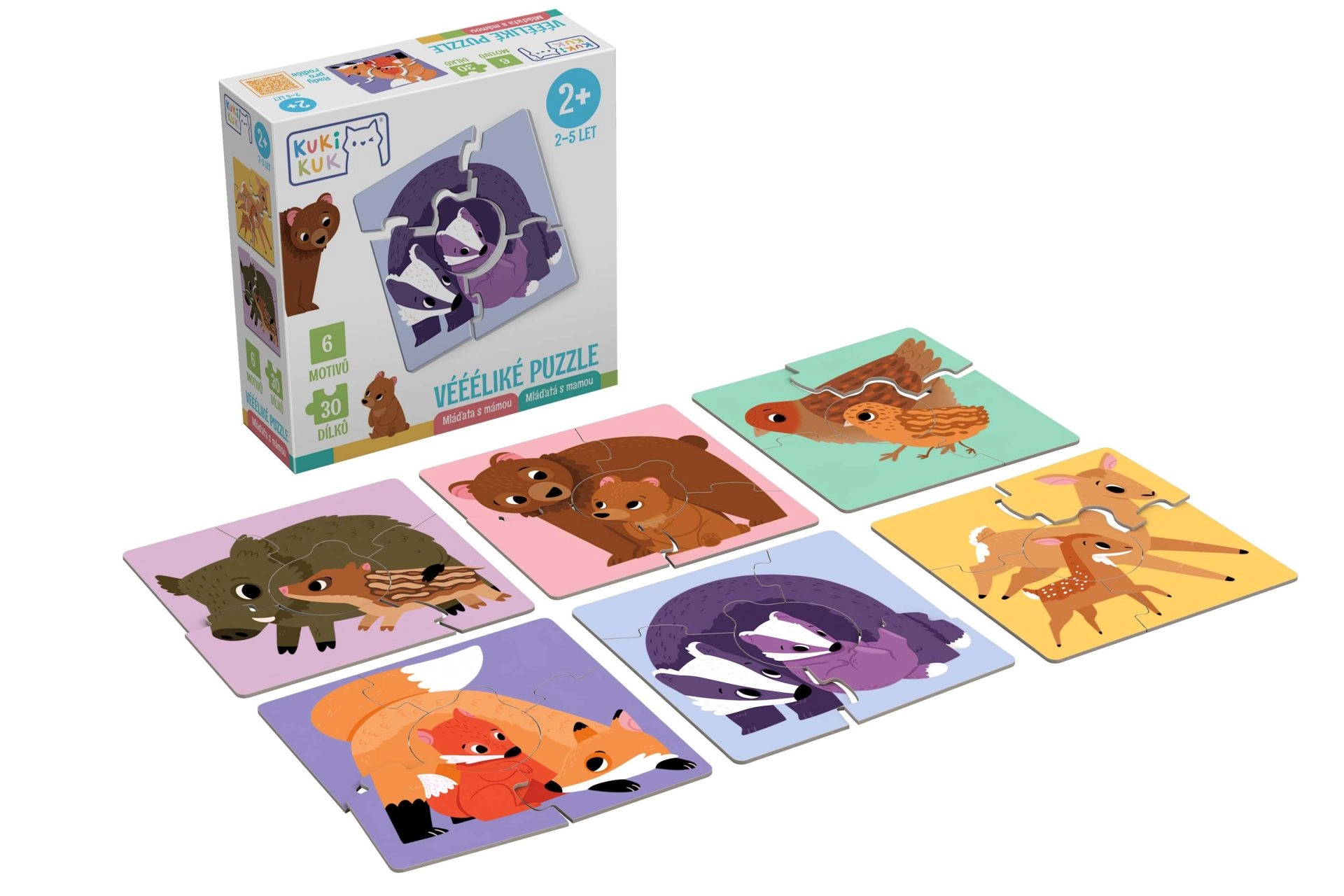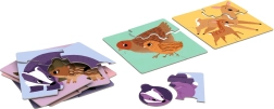 Kaasa on lisatud näpunäited ja mänguvariandid eri vanuserühmadele: alates lihtsast poegade sobitamisest vanematega kuni kokkupanekuni värvitausta järgi ning lõbusate mõistatusteni ilma esikülje vihjeteta. Mäng arendab sõnavara, silma–käe koordinatsiooni ja fantaasiat ning julgustab rääkima loodusest ja loomade elust. Valmistatud Tšehhis.