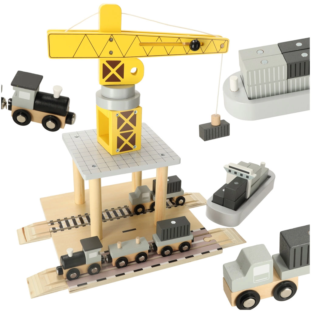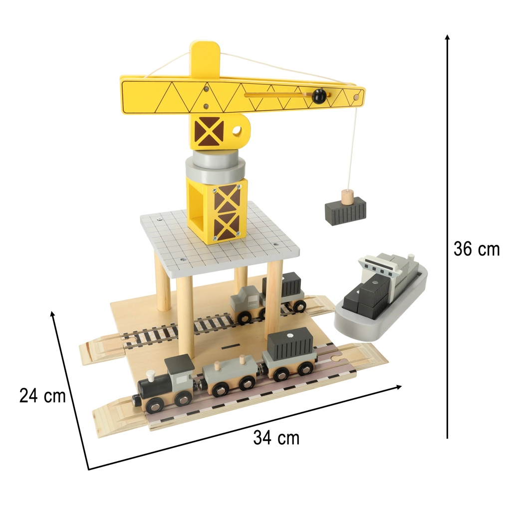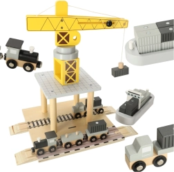 Lastele meeldib see puidust sadamakraan, mis pakub võimalust mängida konteinerite laadimist laevadelt autodele ja rongidele. Komplekt sisaldab palju osi, mis võimaldavad erinevaid stseene, arendades teie lapse fantaasiat ja käelisi oskusi.