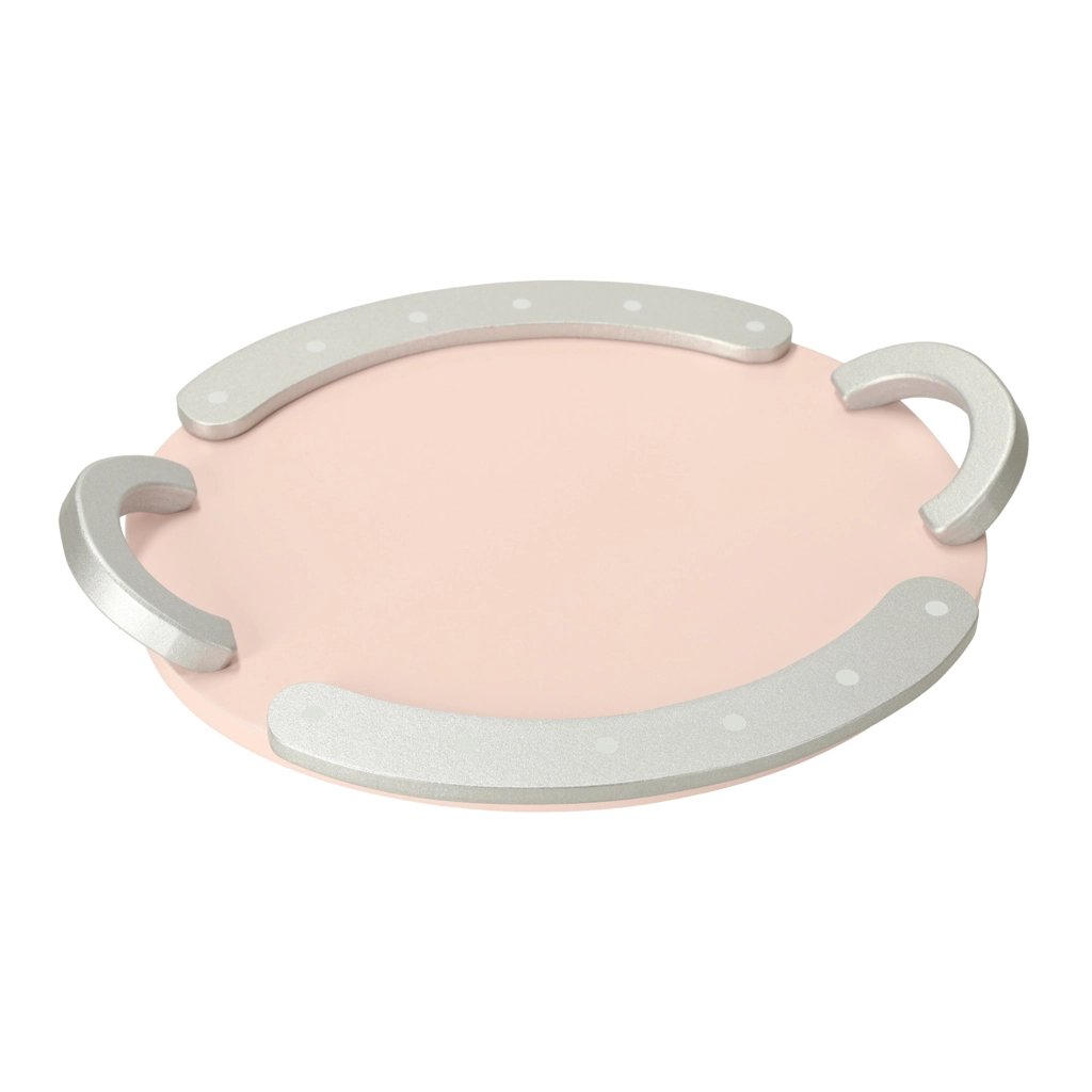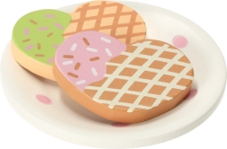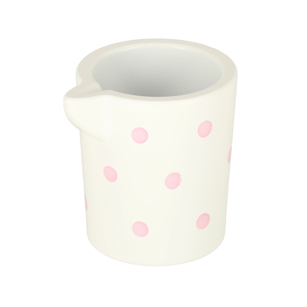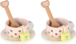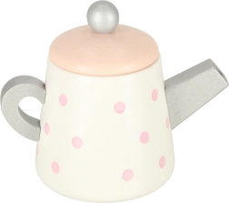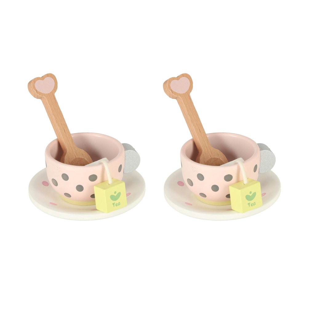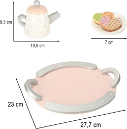 Puidust teekomplektil on võluv pastelse tooniga disain õrnade täppidega, mis köidab laste tähelepanu ja innustab mängima.