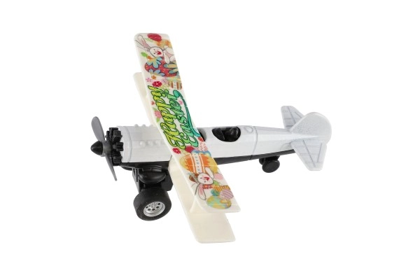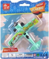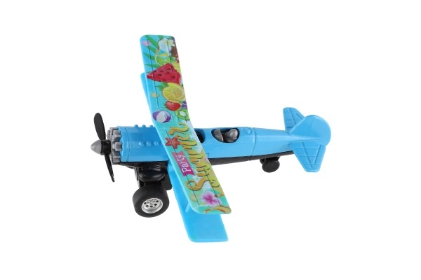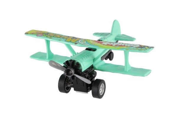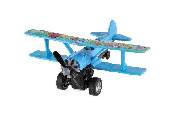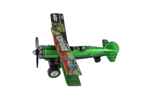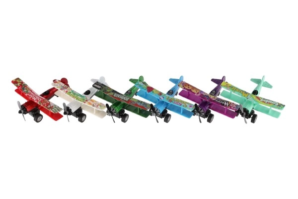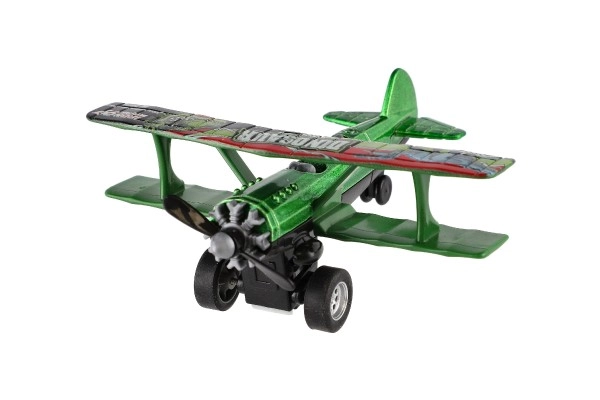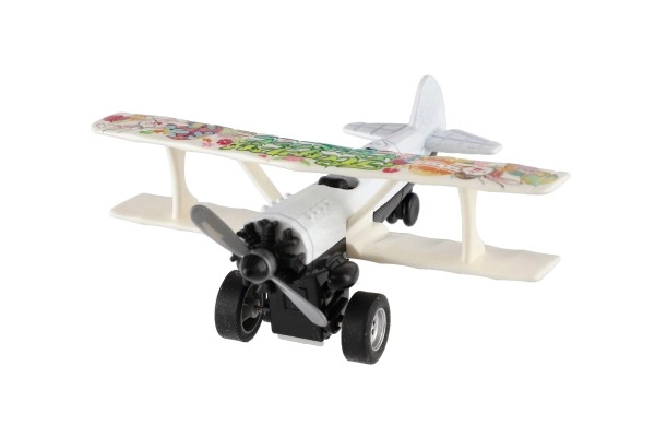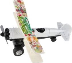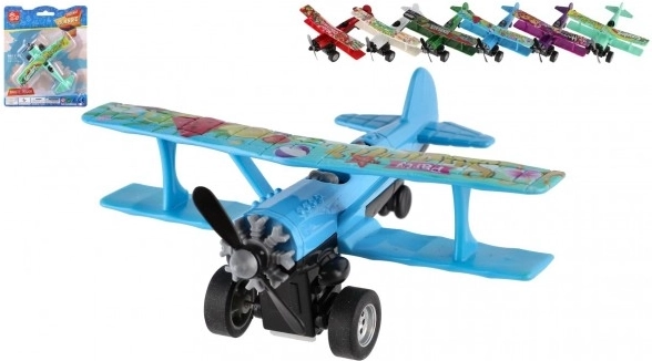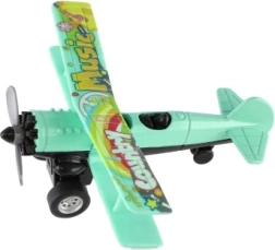 Värviline kahekordse tiivaga lennuk rõõmustab iga väikest pilooti. Tänu tagasikeritavale mehhanismile sööstab see lahti laskmisel edasi ning sõidu ajal hakkab esisõukruvi pöörlema. Vastupidav metalli ja plasti kombinatsioon, kompaktne mõõt 10 × 11 cm ja atraktiivne värvivalik teevad sellest suurepärase mänguasja alates 3. eluaastast.
