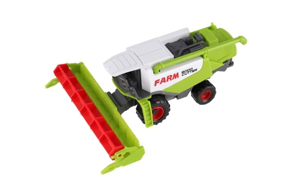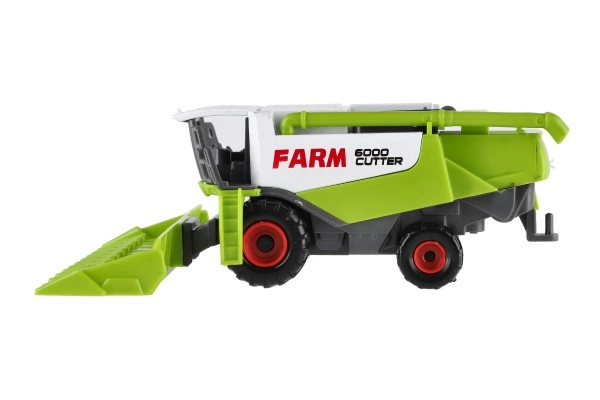 Detailne halli-roheline kombain suure esilõikuriga, mida saab hõlpsasti eemaldada ja tagasi panna. Ideaalne autentseks talumänguks.