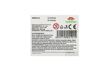 Kompaktne 11 cm pikkus, ümarad servad ja vastupidav plastkonstruktsioon teevad kombainist turvalise mänguasja väikestele lastele.