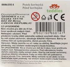 Mänguasjad on loodud rõhuga ohutusele ja mugavale hoiele. Oranžid rauaotsikud eristavad mänguasja selgelt päris esemest, nii et lapsed saavad nautida ohutut ja loovat kovboi- ja šerifimängu.