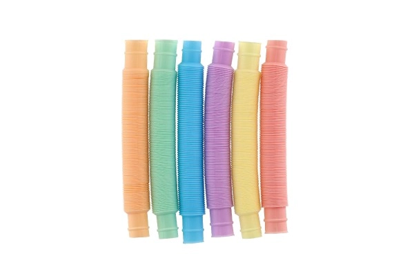 See värviline 6 plasttoru komplekt pakub lõputuid mänguvõimalusi – alates lihtsast venitamisest ja kokku surumisest kuni omanäoliste loomingute loomiseni. Tänu paindlikule harmoonikakonstruktsioonile teevad torud liikumisel lõbusaid helisid, mis toetavad meeleliste stiimulite tajumist ja keskendumist.
