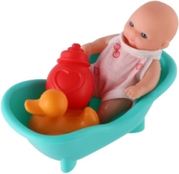 See värvikas vannikomplekt nukuga sobib suurepäraselt igapäevaseks mänguks. Tänu tugevale plastkehale on nukk vastupidav ja lihtsasti hooldatav. Vannike ja väikesed lisad, nagu pudelike või kummipart, toetavad loovat mängu ja peenmotoorika arengut.