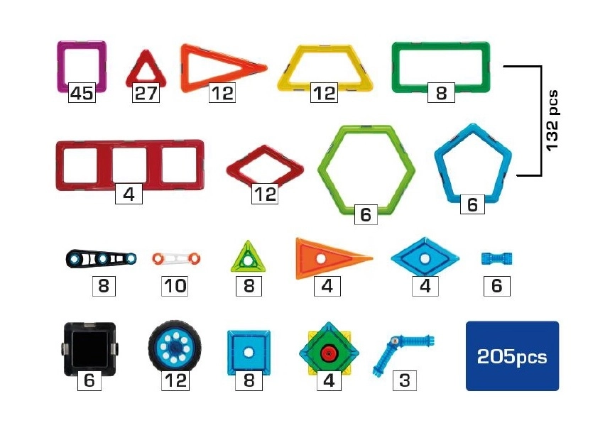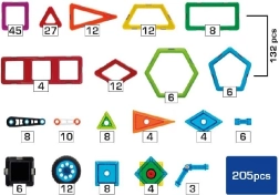 Komplektis on üksikasjalik koostise kirjeldus ja inspireerivad leheküljed. Geosmarti tooted ei ühildu teiste magnetehituskomplektide kaubamärkidega.