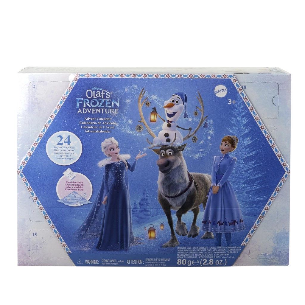 Avasta 24 päeva rõõmu advendikalendriga, mis on inspireeritud lühifilmist Olaf’i jõuluseiklused. Iga päev ootab lapsi uus üllatus – alates liikuvate jäsemetega Anna ja Elsa nukkudest vahetatavate seelikutega kuni lemmiksõpradeni Olafi ja Svenini. Anna põlveliigesed võimaldavad mugavat „sõitu“ Svenil ja veelgi rohkem lõbu lumistes stseenides.