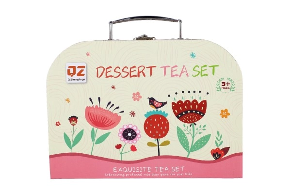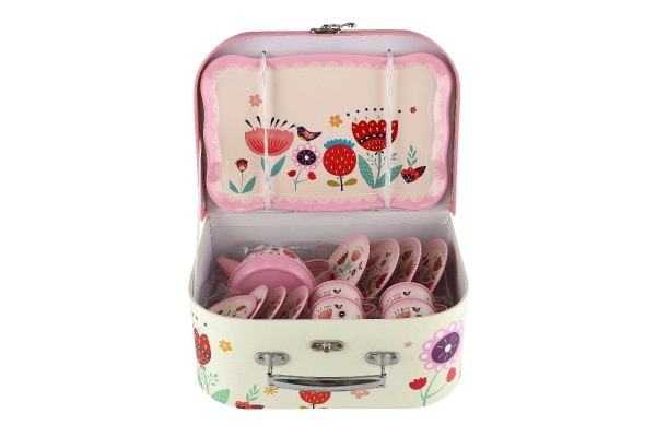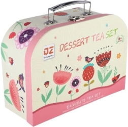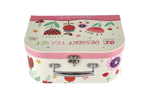 See elegantne ja mänguline teekomplekt innustab iga last korraldama omaenda teeõhtu. Komplekt koosneb mitmekesistest osadest, mis on paigutatud kaunisse lilledekoratsioonidega kohvrikesse:
