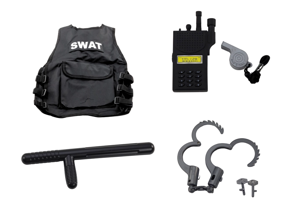 - Realistlikud tarvikud: vest, nuia, käerauad, vile, raadiosaatja