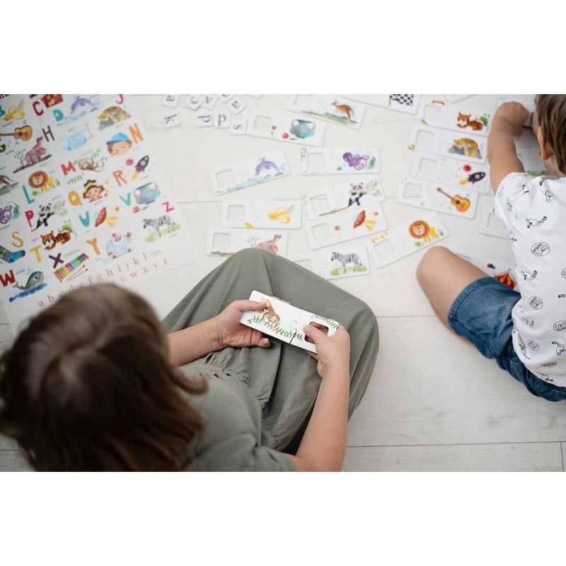 Komplektis on 26 kaheosalise pusle tükki eemaldatavate žetoonidega ning värviline inglise tähestiku plakat. See on suurepärane alternatiiv digimängudele ja toetab 21. sajandi oskuste arengut.
