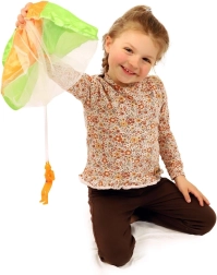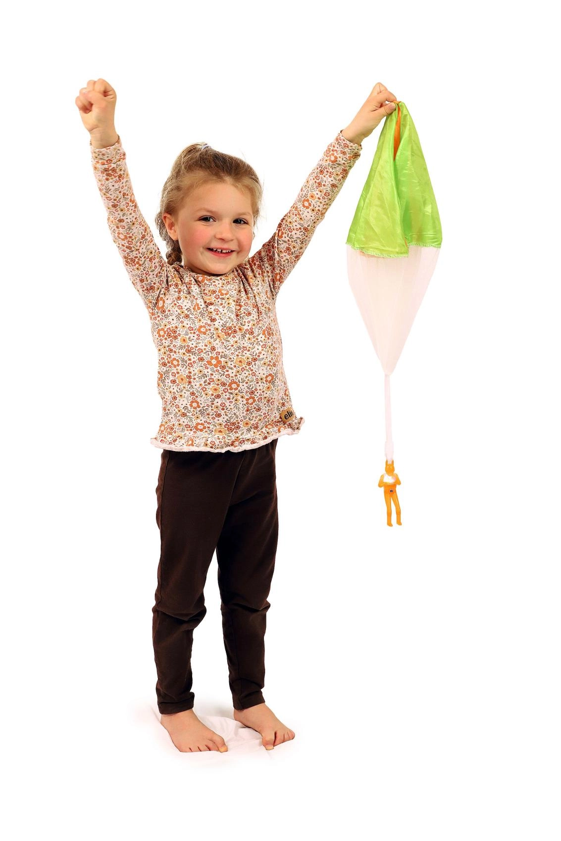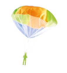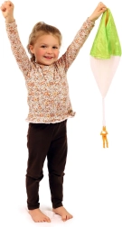 Lõbus mänguasi väikestele seiklejatele: langevarjuri figuur kerge kangast langevarjuga, mis laskumisel õrnalt liugleb ja tänu integreeritud tulele on hästi nähtav. Ideaalne aeda ja mänguväljakule. Kerge langevari, sujuv laskumine, helendav efekt ja patareid komplektis koheseks lõbuks.