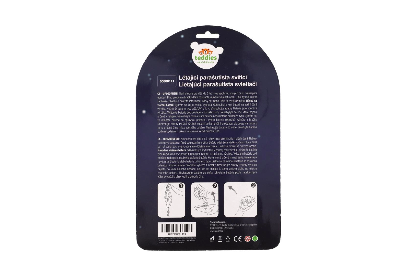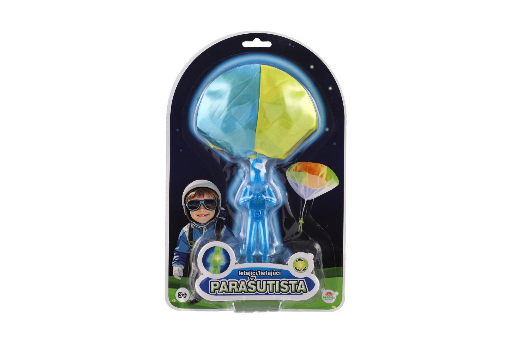 Viska, vaata ja püüa! Helendav langevarjur langevarjuga pakub lastele lõputut tegevusrohket lõbu ja õpetab samal ajal langemise ning liuglemise põhimõtteid. Piisab õhku viskamisest – langevari avaneb ja aeglustab langemist nagu päris langevarjuril. Tänu 12 cm kompaktsele figuurile sobib mänguasi aeda, parki ja siseruumi.