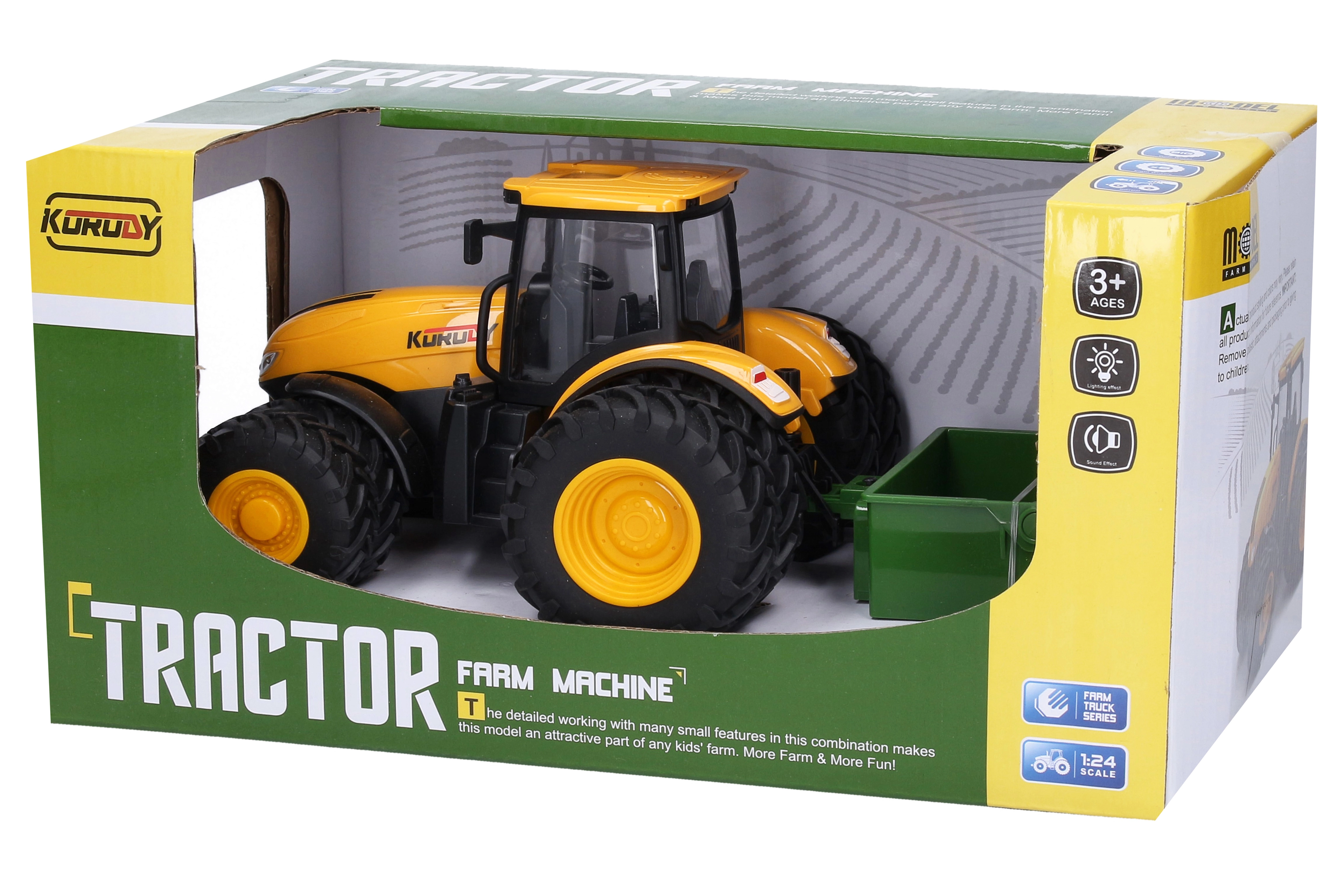 See traktor tuleb tarvikutega, mis innustavad lapsi avastama ja mängima. Mõõtmetega 27,5 × 10,5 × 12 cm on see suurepärane valik mängimiseks. Traktor on varustatud topeltratastega parema stabiilsuse ja maastikul liikumise jaoks. Tänu inertsajamile liigub traktor hõlpsalt ilma patareisid kasutamata. Valgus- ja heliefektid loovad autentse ja põneva kogemuse.