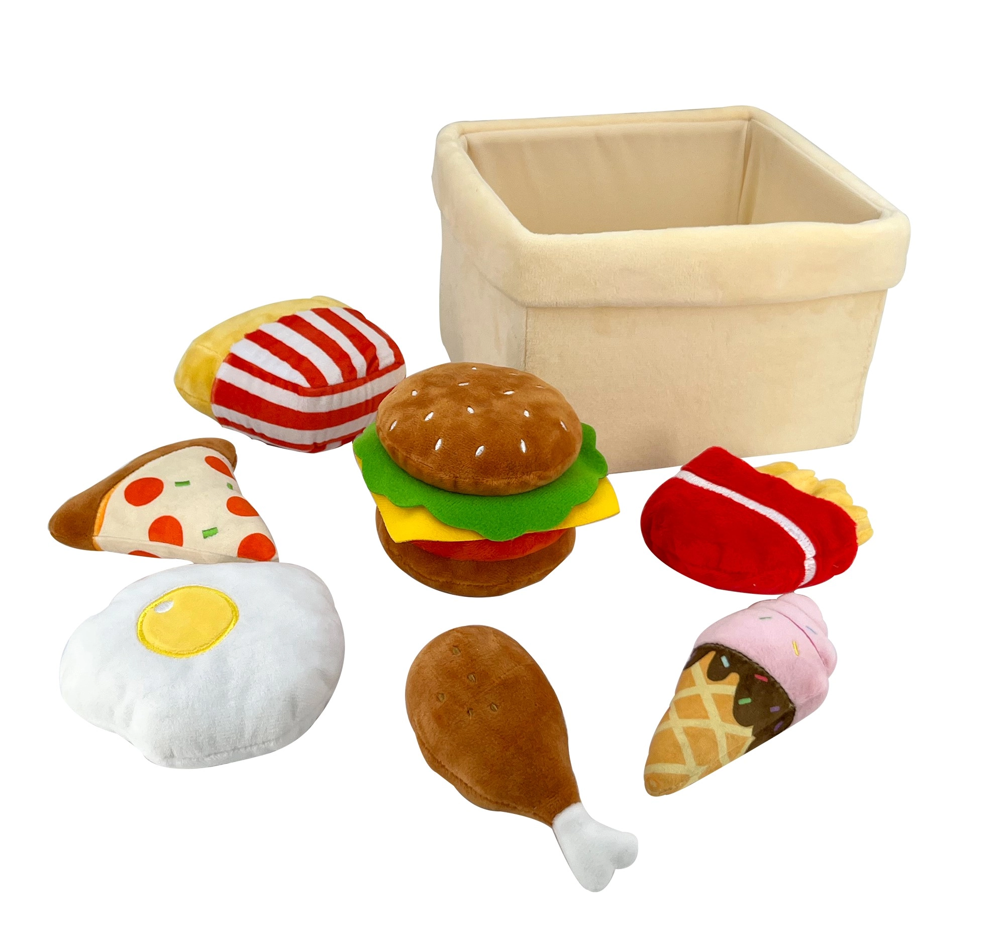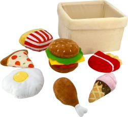 See armas pehme kiirtoidukomplekt toob lastetoa kööki kuhjaga lõbu. Praktilises korvis on hamburger, friikartulid, pitsa, kanakints, praemuna, muffin ja jäätis. Iga osa on pehme, käes mõnus ning tänu tikanddetailidele atraktiivne ja realistlik.