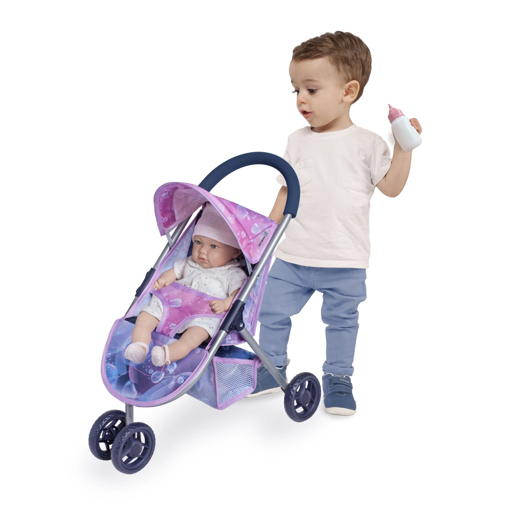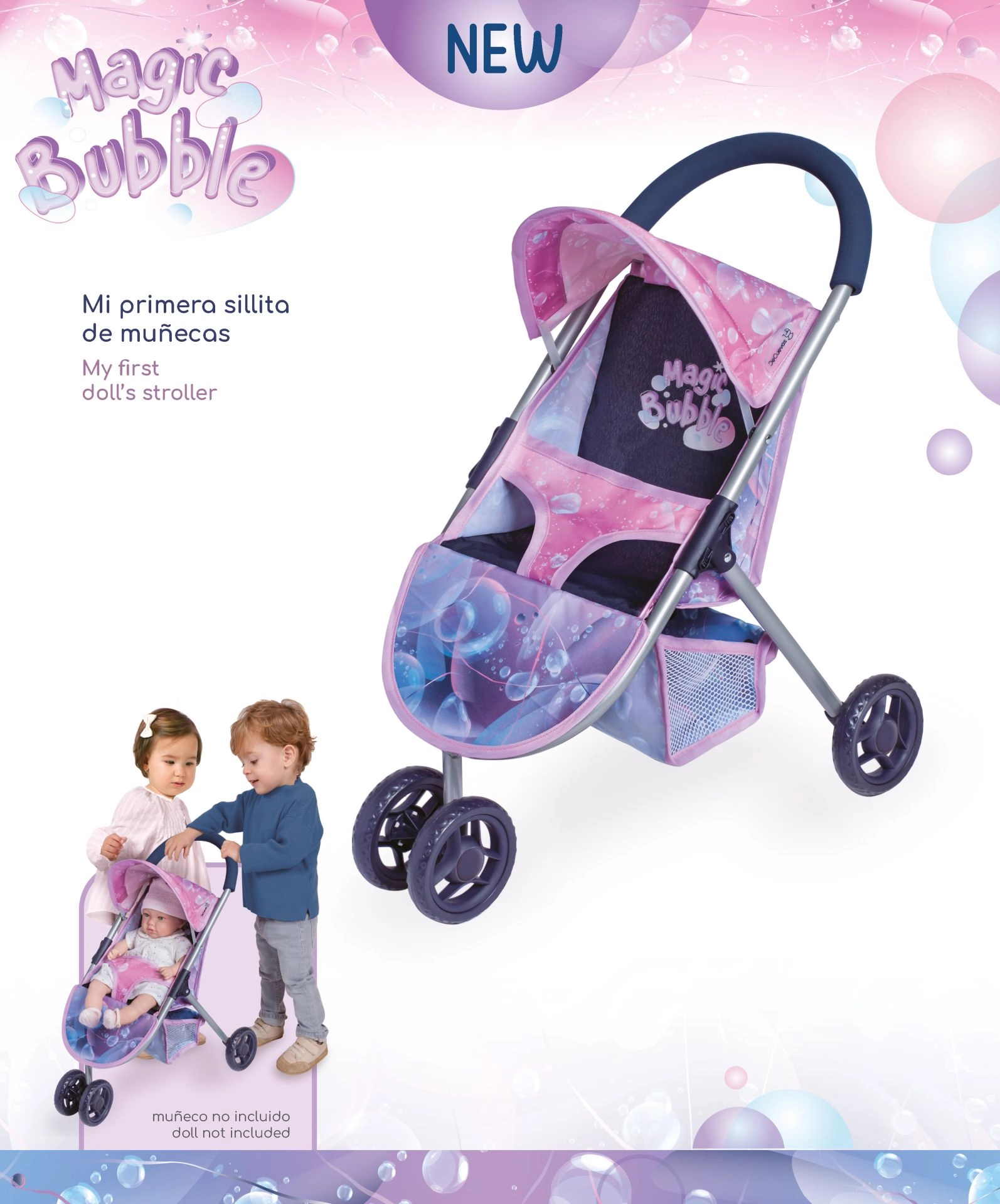 Avastage Hispaania disain laste mõõdus. See kolmerattaline nukukäru kollektsioonist MAGIC BUBBLE toob sujuvad värviüleminekud roosast kuningliku siniseni ja ikoonilised mullid, mis rõõmustavad iga väikest hoolitsejat. Tänu madalale käepidemele ja 1,5 kg kaalule on käruga mugav sõita ka noorematel lastel.
