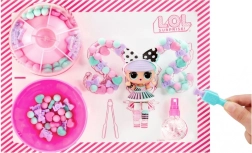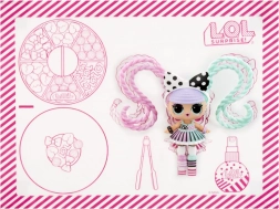 L.O.L. Surprise! nukk helmestega juustega on täiuslik kingitus igale lapsele, kes armastab loomingulist mängu. Komplektist leiad erinevaid helmeid, millega saab teha patsikuid, patsi või krunni. Piisab, kui niisutada juuksesalk, kinnitada see krunni sisse ja hakata helmeid lükkima.