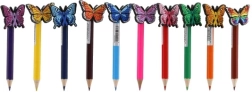 Iga pliiats on kaunistatud värvilise liblikaga, mis annab pliiatsitele rõõmsa ja praktilise ilme.