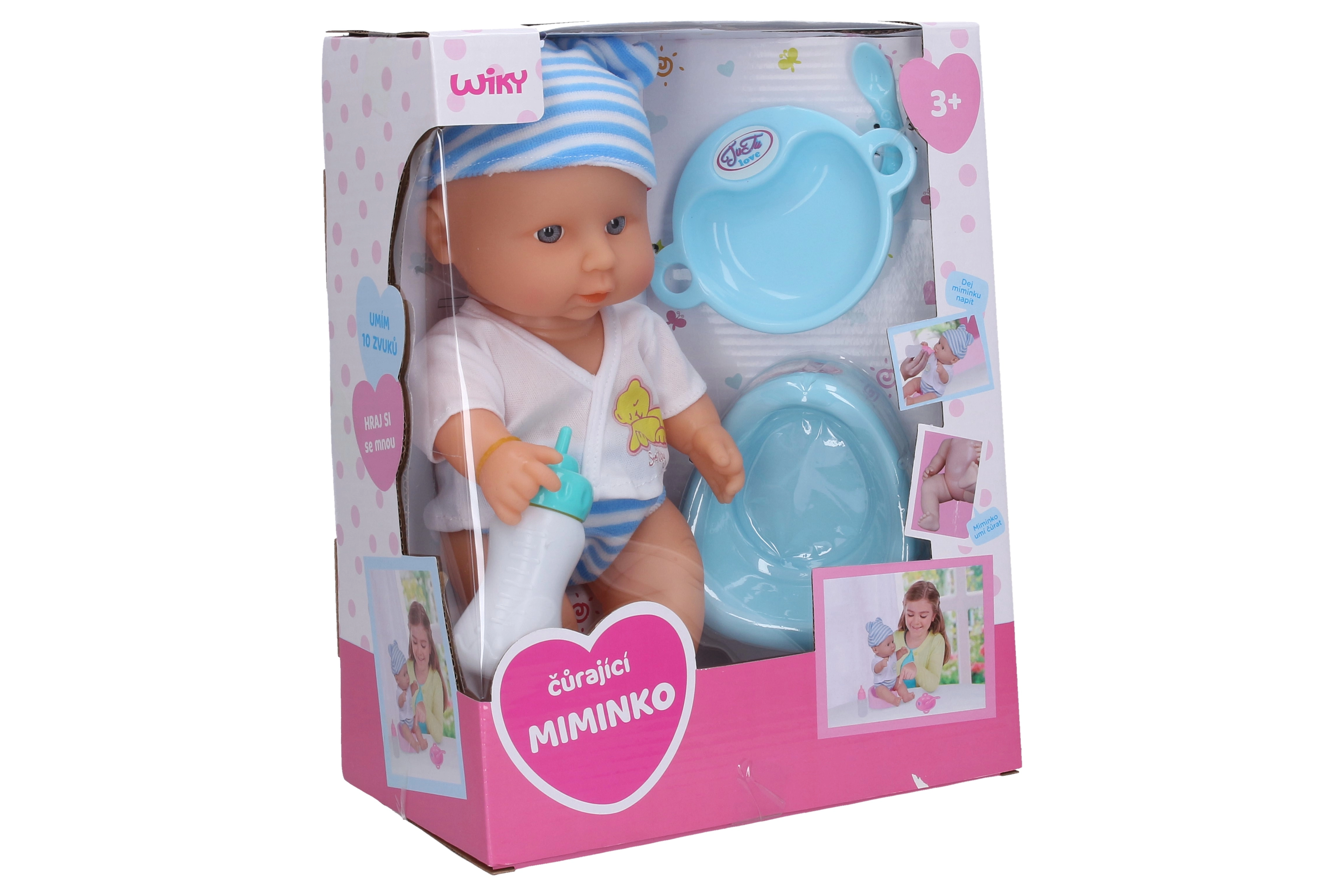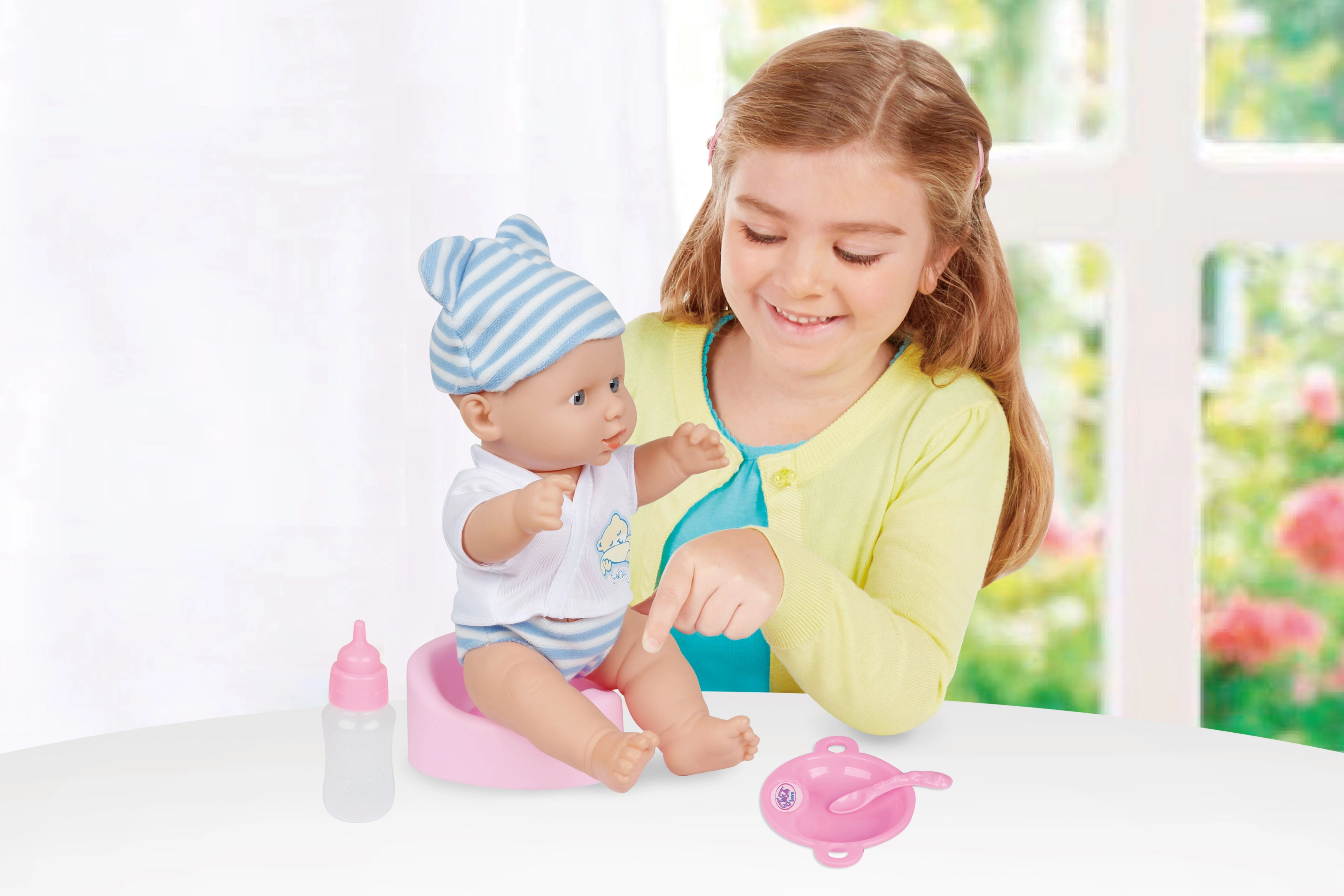 Realistlik 30 cm beebinukk rollimänguks, mis oskab pärast pudelist joomist pissida ja teeb kuni 10 erinevat heli. Komplektis on pissipott, pudel, taldrik ja lusikas. Patareid 3× AG13 on pakendis kaasas.
