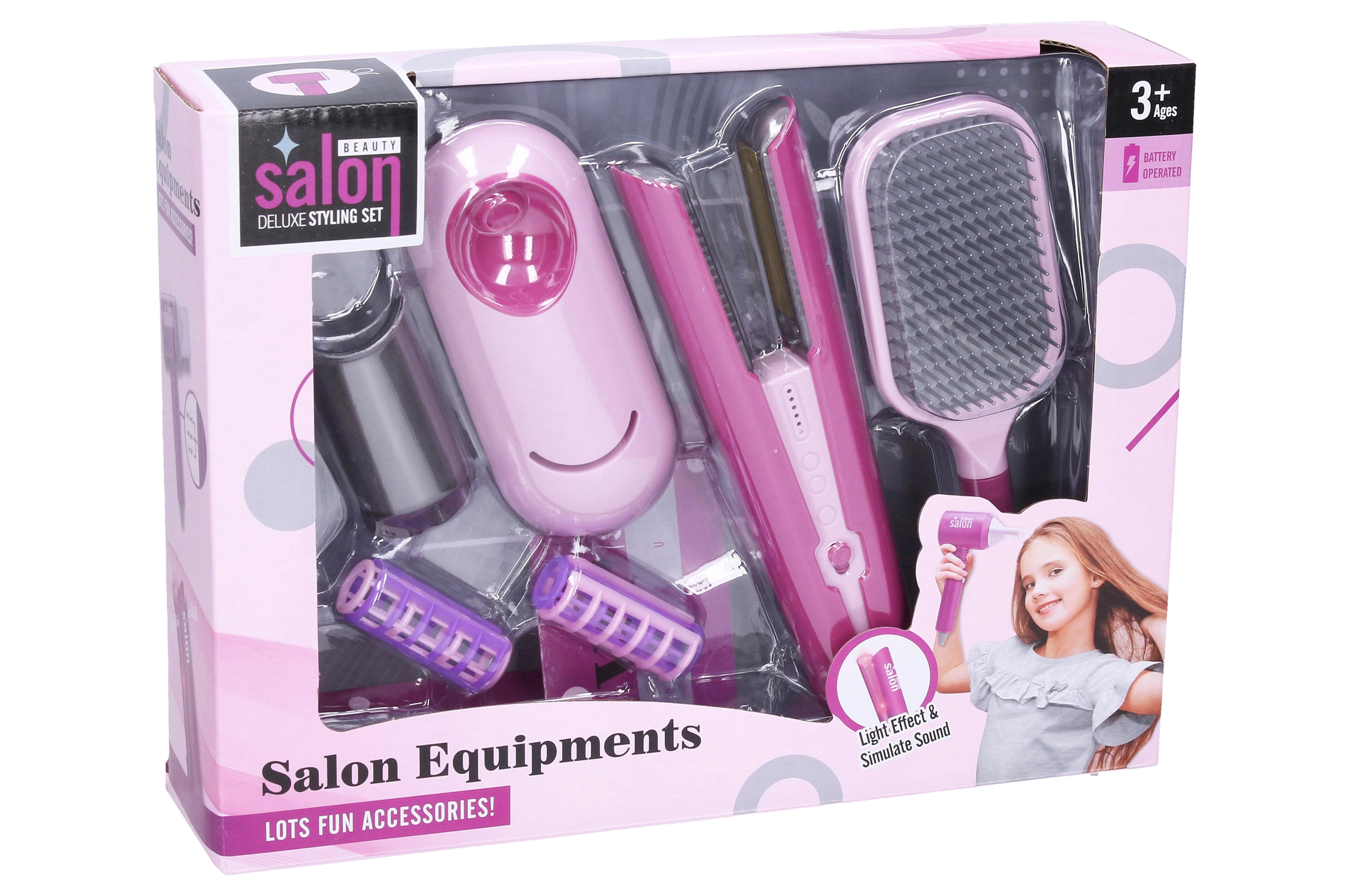 Stiilne 19 cm pikkune laste juuksetriikraud rõõmustab väikseid juuksureid. Komplektis on rohkelt tarvikuid ja lõbusad valgus- ja heliefektid, mis muudavad mängu realistlikumaks. Praktiline komplekt koos lokitangide, harja, juukserullide ja lokitangide alusega toetab loovat mängu ja arendab fantaasiat.