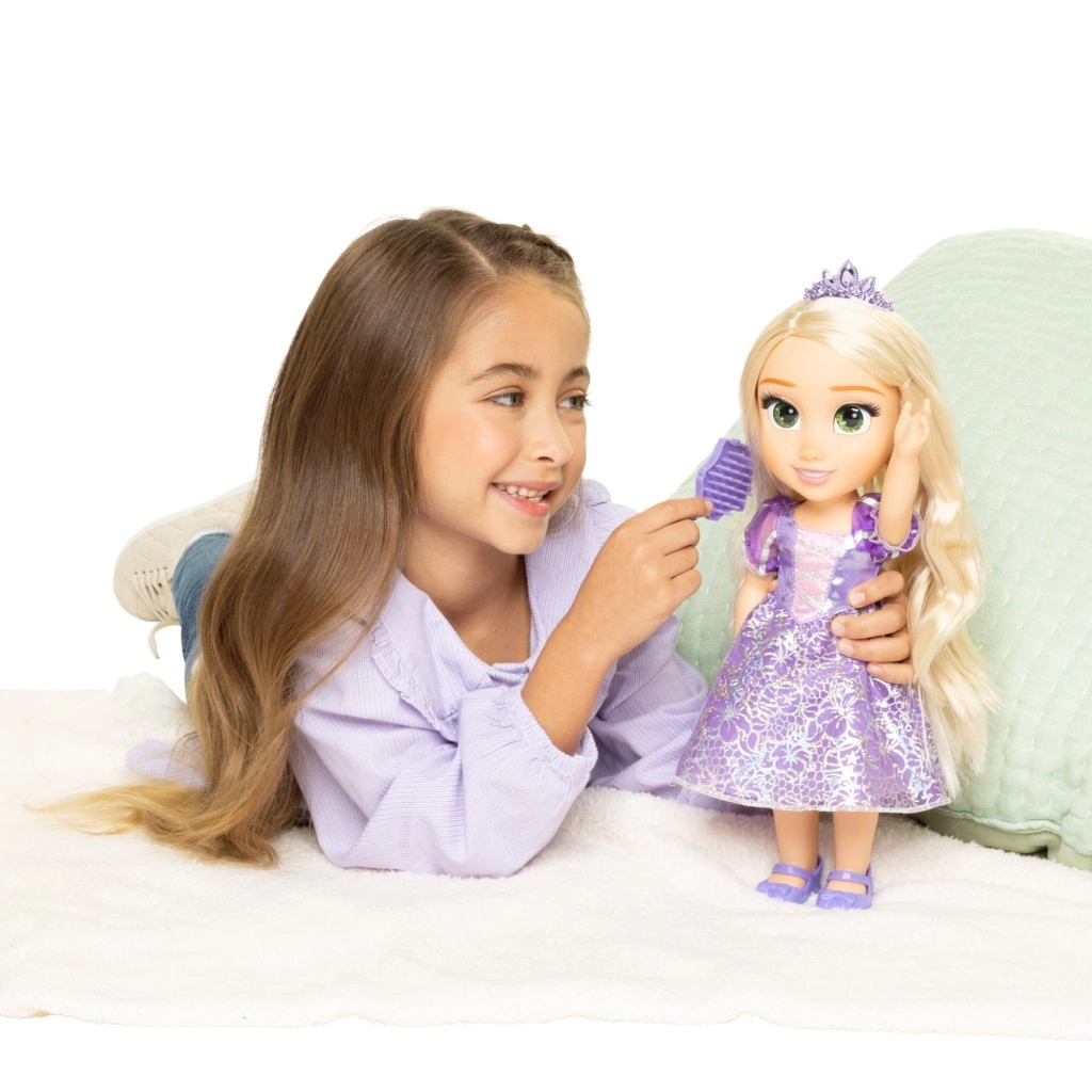 Avastage muinasjuttude võlu 40 cm suuruse Rapuntsli nukuga. Tal on säravad silmad, kaunid lillad litritega detailidega kleidid, pikad blondid juuksed ja kaasas on juuksehari. Tänu liigendatud kaela, käte ja kere ühendusele sobib suurepäraselt fantaasiamängudeks ja soengute tegemiseks.