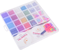 Läbipaistev karp hoiab kõik helmed selgelt eraldatuna, nii et sul on meisterdamisel alati õige toon ja kuju käepärast.
