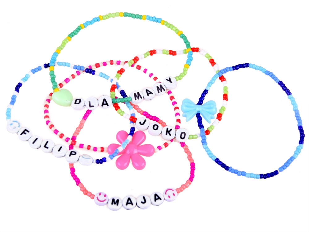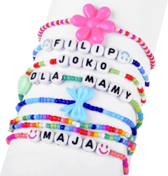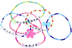 Valmista käevõrusid ja kaelakeesid nimede, initsiaalide või sõnumitega tänu tähehelmestele ja värvilistele lisanditele.