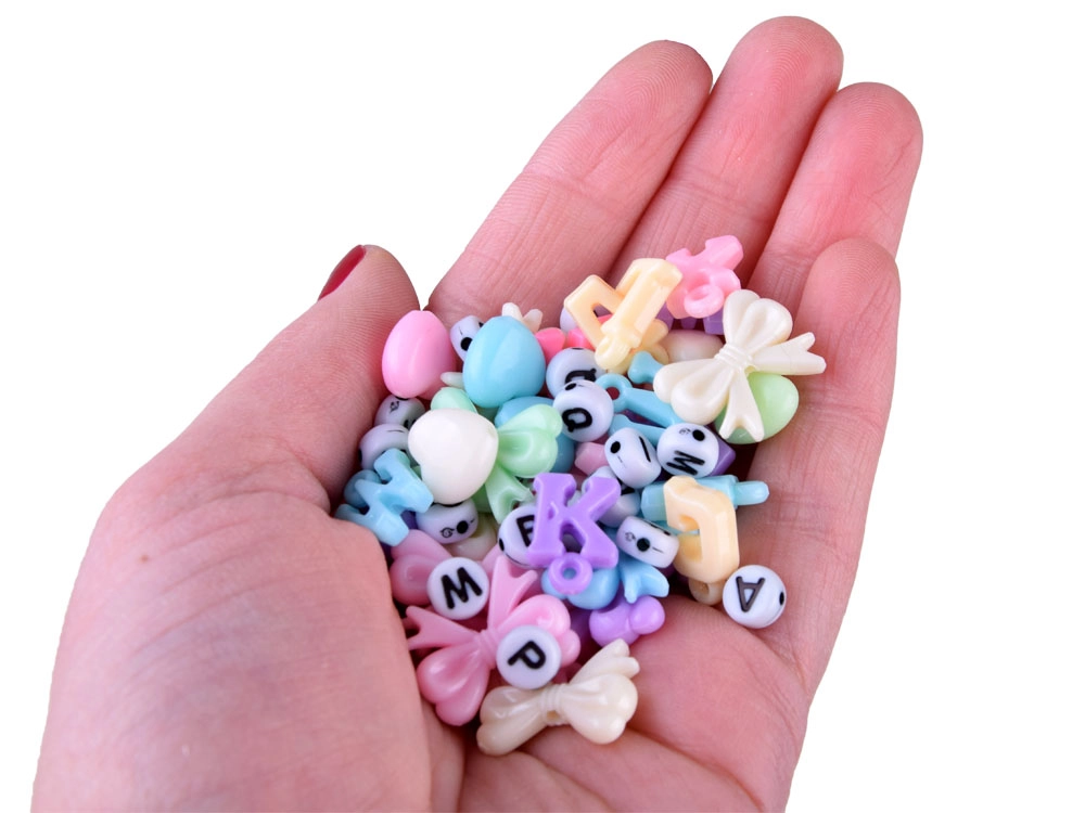 - Lai valik kujusid ja värve – tähed, südamed, lillekesed, lipsukesed ja mitmevärvilised helmekesed.